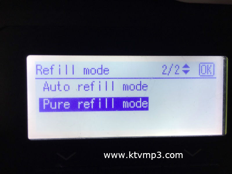 依次按 :清除/停止, 1, 0 ,7, 开始,进入维修模式,选择Engine Maintenance按OK,再选择Refill Mode按OK,最后选择Pure refil mode按OK,机器会重新启动,清零完成。